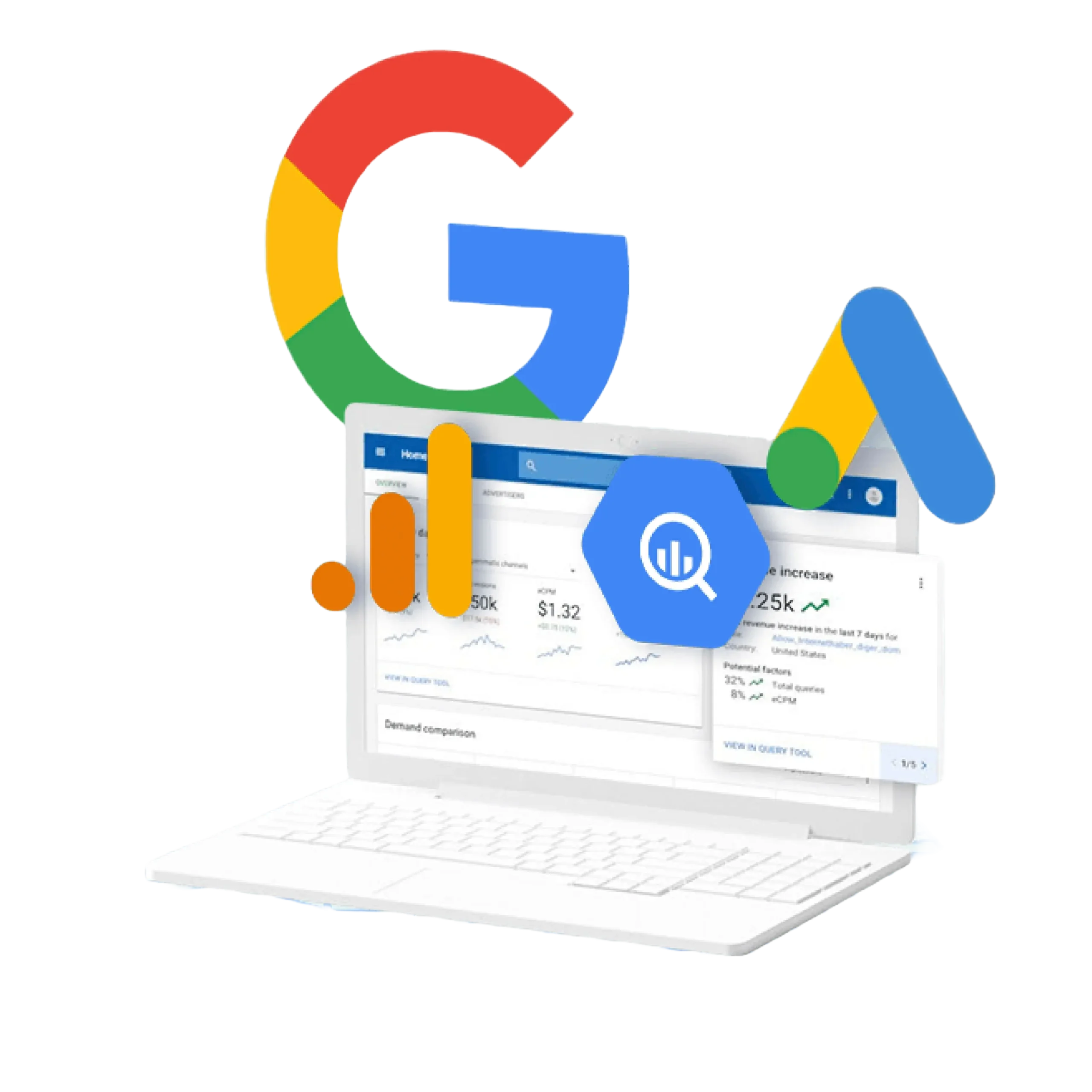 To set up your Google Ads campaigns, we first organize your account with ad groups, retargeting lists, keywords, and product feeds. Then, we create engaging ads that connect with your target audience and direct them to a landing page designed to drive conversions.